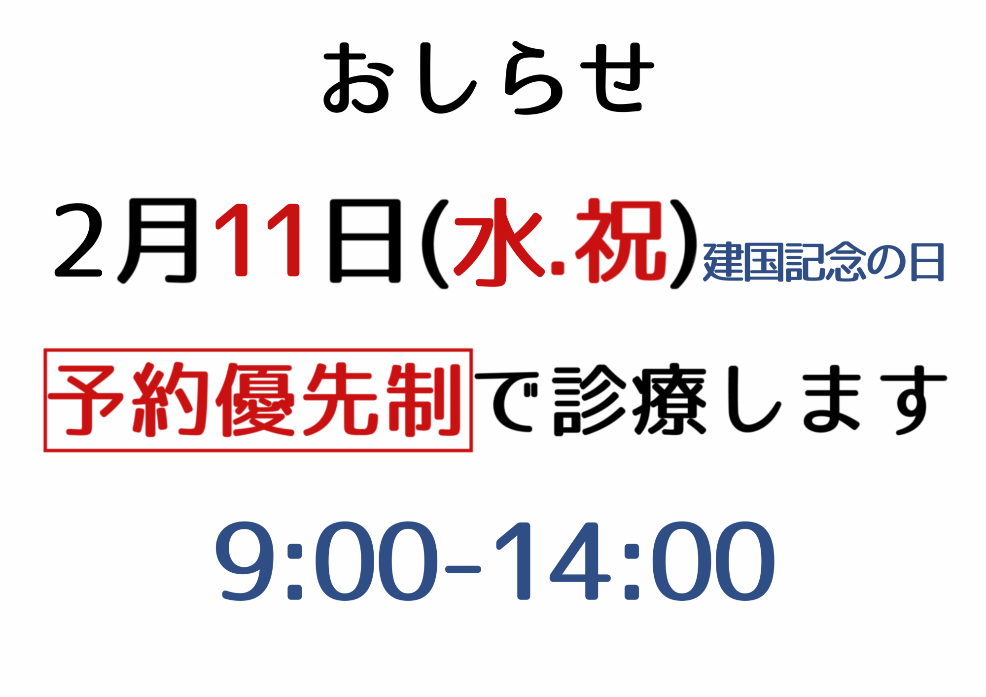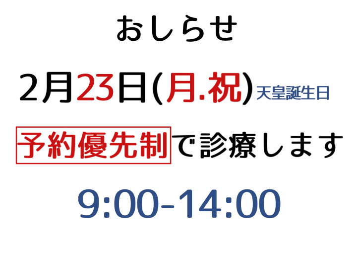 平日は予約不要です。診療時間内に直接ご来院ください。